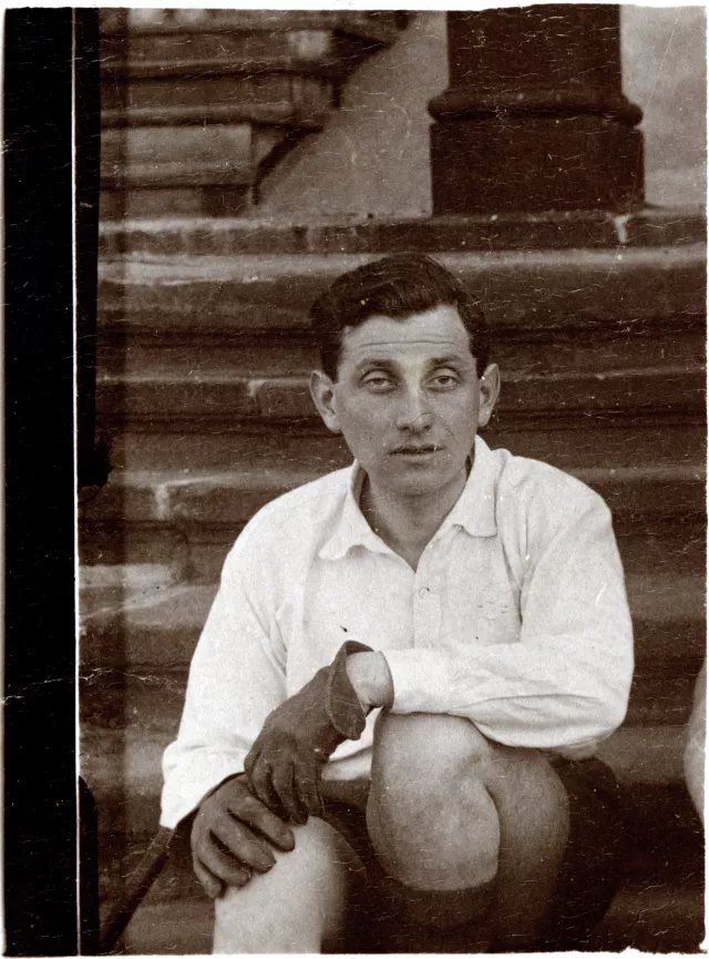 Ez itt a bátyám fia, Gönczi Ádám. A bátyám László 1905-ben született, reáliskolában érettségizett, és nem vették föl az egyetemre a numerus clausus miatt. Először a nagybátyámnál volt irodában, aztán volt egy kisbútorműhelye. Nem volt egy sikeres ember. A végén volt egy nagyon jó állása. A visszacsatolt -- már ez háború -- területen [lásd: második bécsi döntés], Szilágy megye valamelyik részén egy birtokon volt intéző, ott ő nagyon szépen keresett. Lett két fiuk. A bátyám kitért reformátusra a felesége kedvéért, amikor a felesége terhes lett. Az Ádám már reformátusnak született.