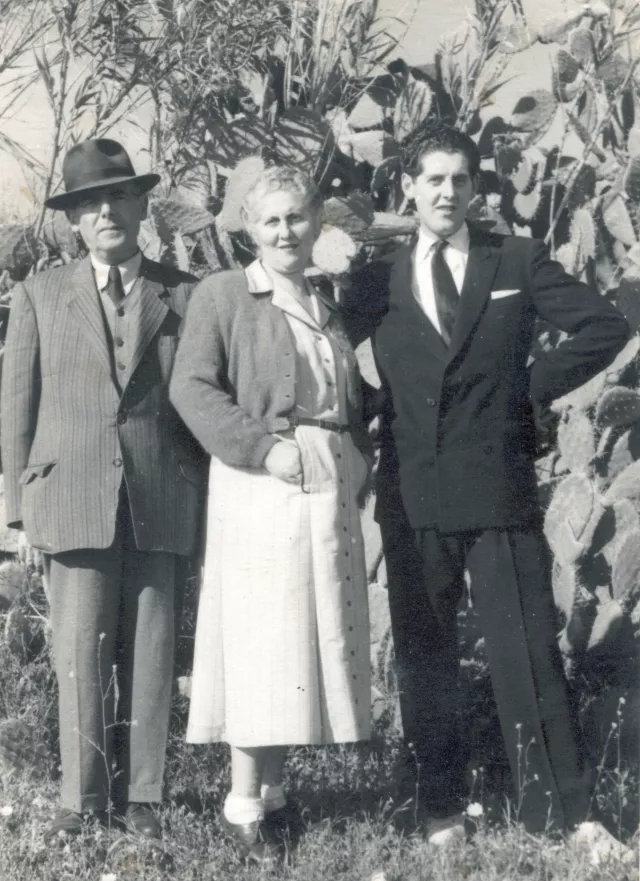 Ezek a szüleim, Grünbaum András és Margit Izraelben 1950-ben. Jobbról az első az öcsém, Grünbaum György.