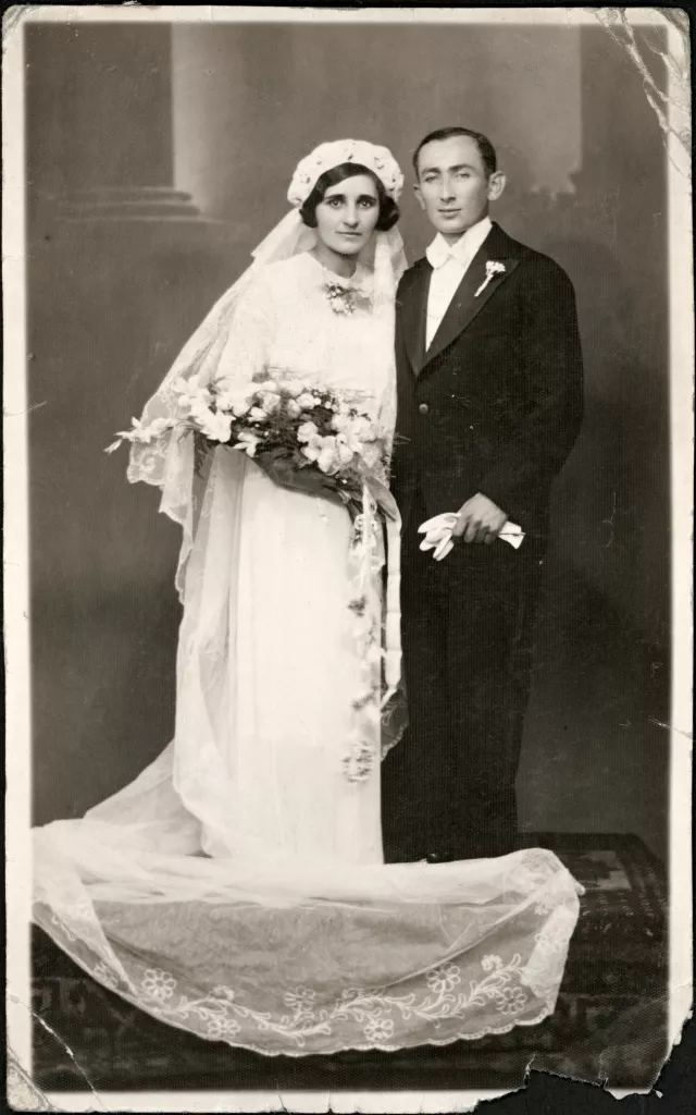 Az esküvőjük Grünwald Lacival 1938-ban lehetett, a ház udvarán, a Károlyi utca 24-ben. Hüpe alatt tartották, emlékszem rá. Nekem nem is volt egyházi esküvőm.