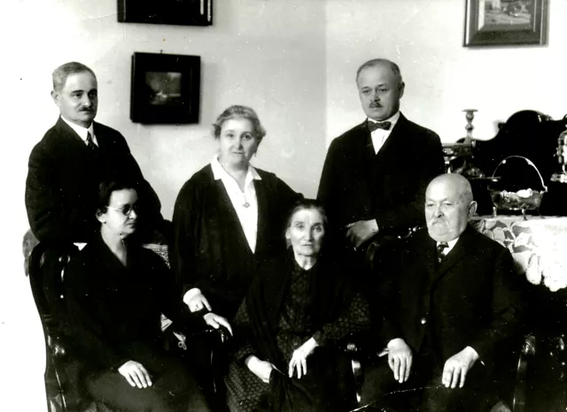 A lánytestvérei mind művelt hölgyek voltak, de hogy mit tanultak, milyen iskolákat végeztek, nem tudom. A Helén néni Kolozsvárra ment férjhez. Azt hiszem, meghalt a férje és kétszer volt férjnél. A második férjének a nevét tudom, Weisz József volt, férfiszabó Kolozsvárt. Maca néni Hódmezővásárhelyen volt férjnél, a férje Schenk volt, a keresztnevét nem tudom. Elvált, és aztán a Helén néni révén, aki akkor már Kolozsvárt volt férjnél, a Maca néninek szereztek Kolozsvárt egy férjet, akinek a neve Droth volt, és az nagyon jó házasság volt, adoptálta is a Maca néni akkor már meglévő három gyermekét, Istvánt, Margitot és Györgyöt. Regina Szentesen ment férjhez és ott szülte a gyermekeket, majd a legutolsó gyereknél, a Gyuri amikor született, meghalt és ottmaradt özvegyül a papa és 3-4 gyerek, és a nagyszüleim a kisgyereket magukhoz vették, hogy levegyék a terhet az özvegyen maradt férfiről. Ernő nagybátyám pedig bányamérnök lett, Rózsaszentmártonba [Heves vm.-ben lévő 1700 lelkes nagyközség. -- A szerk.] került szénbányába mérnökként és ott lett végül az egész bánya igazgatója. Betegségben halt meg, még a háború előtt Rózsaszentmártonban. Az apám öccse, tehát Szentesen csak az apám maradt és ő vette át nagyapámtól az üzletnek a vezetését.