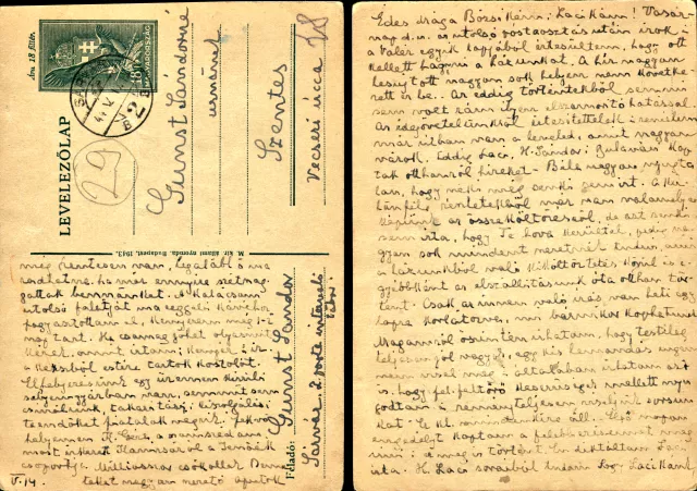Ez az utolsó levelezőlap, amit apám küldött anyámnak, miután elvitték Szentesről. Apámat, Gunst Sándor izraelita hitű szentesi lakost őrizetbe vették 1944 tavaszán. Azért kellett még a gettó felállítása előtt lecsukni és deportálni, mert ő volt ebben az időben a hitközség elnöke. Ez közvetlenül 1944. március 19. után történt, amikor a németek megszállták Magyaroszágot.