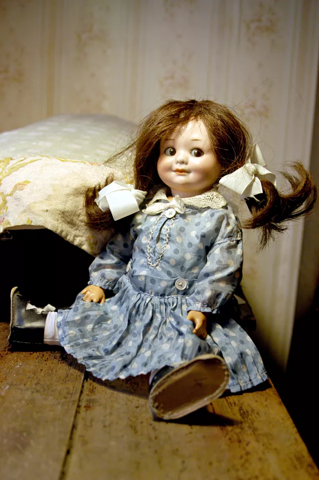 Mi mind a ketten a nővéremmel nagyon babásak voltunk. Neki volt két babája, a Piroska és az Ibolya. Nekem három volt, az Aranka, a Rózsika és a Juliska. Nagyon sokat játszottunk a "gyerekekkel", és nagyon a szívünkhöz voltak nőve. Mikor már felnőttek voltunk, akkor is vigyáztunk rájuk, egy szekrényben voltak, gondosan elpakolva. 1944-ben, amikor bennünket elvittek, és idegenek jöttek a lakásba, a szekrényeinket kirámolták, főleg az értékesebb dolgokat elvitték. Ezek a babák egy olyan szekrényben voltak, amit nem tudtak kinyitani, és ott megmaradtak. A lakásunk majdnem üres volt, de az összes baba ott maradt. Azóta én vigyáztam rájuk, gondozva voltak. Néhány évvel ezelőtt aztán egy rokon család gyerekeinek odaadtam a babákat. De mondtam, hogy ezt az egy babát nem adom oda senkinek, mert ez az én nővéremnek, Évinek a legkedvesebb játéka, legkedvesebb babája volt. Nagyon szépen rendbe hozatták, ott ül nekem a díványon, és naponta megsimogatom. Azóta csak Évának hívom.