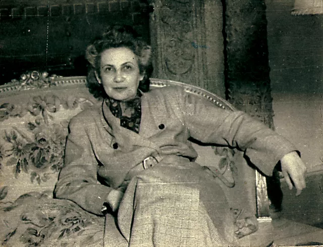 Ez az asszony Havas Emilné, Ella néni, aki az én unokanővérem volt. A kép Budapesten készült 1950-ben.