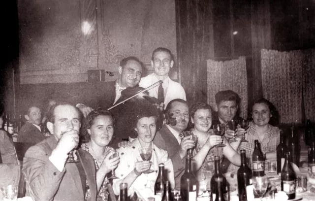 Ez a kép akkor készült Beregszászon, amikor 1951-ben együtt ünnepeltem a barátaimmal a Szovjet Hadseregből való leszerelésemet. Az összes beregszászi zsidó eljött, hogy velem ünnepeljen. Én a hegedűs mellett állok. Balról az első Berkó nagybátyám, apám öccse, és mellette ül a második felesége, akivel a háború után házasodott össze.