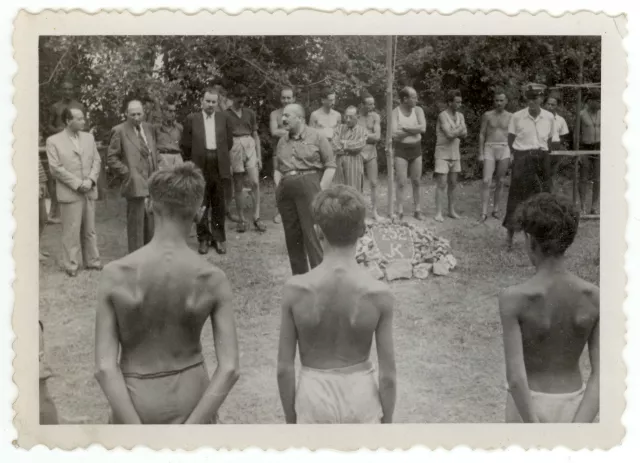 Nem tudom, hogy ez a kép milyen alkalomból készült, csak azt, hogy a felszabadulás után, 1946-ban vagy 1947-ben. Vagy azt ábrázolja, amikor apám foglalkozást tart egy cionista ifjúsági táborban, amit a Vívó és Atlétikai Klub újbóli megindításakor rendeztek, vagy egy zsidó cserkészcsapat táborában beszél a fiatalokhoz. [A kép közepén lévő kőhalmon pajzs alakú keretben a következő felirat: 252 K.] [A Vívó és Atlétikai Clubot (VAC)1906-ban alapította a Makkabea, amely cionista egyetemisták szövetsége volt. Az egyesület elsősorban zsidó fiataloknak kívánt sportolási lehetőséget teremteni, de a részvétel nem volt korlátozva. Fénykorát az 1930-40 közötti években élte. 1944-ben feloszlatták. A háború után a klub újraindította tevékenységét, de miután a működés összes feltétele megszűnt, a klub 1949-ben bezárta kapuit. -- A szerk.] Apám a felszabadulás után közszereplővé vált, kedvelték, és az ilyen katonás alkalmakra mindig el kellett mennie.