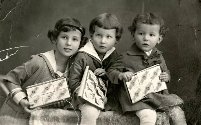 Akkoriban az volt a divat, hogy a moziban előadás előtt mutattak reklámokat az üzletek.És apukám a három gyerekével reklámozta a sajtot. Én kilencéves voltam, amikor ez a reklám készült (a kép bal szélén), Tibi egy-másfél (középen), Ági négyéves (jobbra). Apuka lefényképeztetett minket, és mielőtt a film elkezdődött a moziban, ez a kép volt a reklám, és alá volt írva: "Vegyen nagyon finom Glück-féle Arany Imperiál krémsajtot!" Azt is odaírták, hogy hol van az üzlet, és ez ment a moziban pár hétig - el is jöttek a szegediek, vették a sajtot, nagyon jó forgalma volt. Volt, aki fölismert az utcán bennünket. Egyszer, amikor mentünk sétálni a gyerekekkel, valaki odajött hozzám és megszólított: "Te kislány, nem te vagy a moziban?" "De - mondtam nagyon boldogan - én vagyok." "Tényleg te voltál - mondta -, fölismertelek a pisze orrodról".