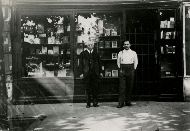 Izsák Ignác és Weisz József a papírkereskedés előtt