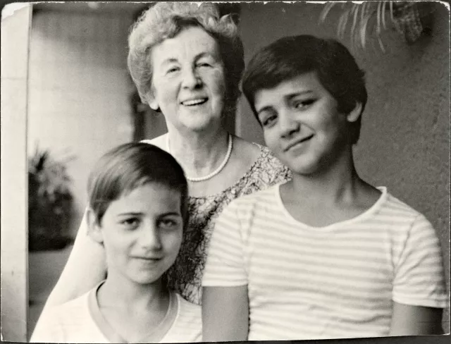 A legkisebb unokám Miki, aki ezen a képen nincs rajta, most 25 éves. Ő kint él Izraelben, több mint három éve letelepedett ott, van már lakása is. Miki internettel foglalkozik, több nyelvet beszél, és egy ideig mint tolmács dolgozott Izraelben a katonaságnál, de most már a Jad Vashem Intézetben dolgozik. Magyar és izraeli kettős állampolgár. Ő annyira vallásos lett, hogy mielőtt kiment, azt mondta, ugyan már, nem érdekes, nem számít - és megoperáltatta magát még itthon, úgy ment ki Izraelbe.