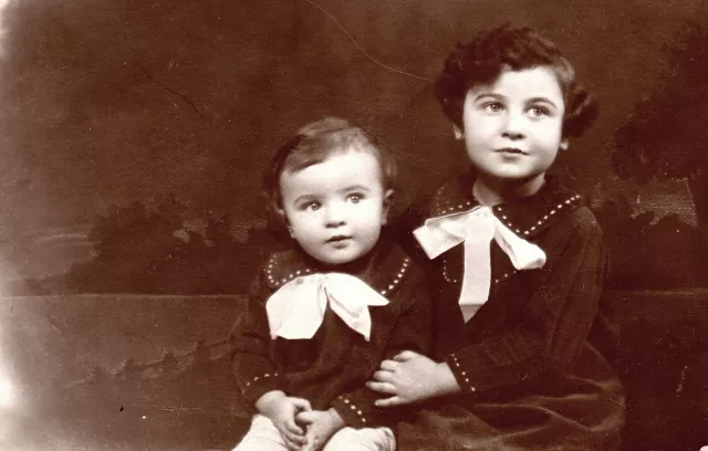 Balra én, jobbra a nővérem, Klári. Műtermi felvétel 1930-ból.