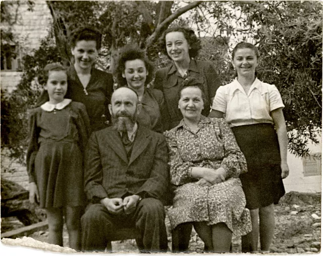 Sok családtag látható rajta. Apám és anyám ül az első sorban. Balról az első mögöttük Ahava, az unokahúgom, mellette az anyja, azaz Sosáná nővérem, mellette Manci, a másik unokahúgom, ő a Klein Pali bácsinak volt a lánya. A Klein Pali bácsi is kikerült a Kasztner-vonattal Palesztinába és a felesége is [Föltehetően először Svájcba kerültek, mint a Kasztner-vonat többi utasa, és onnan mentek tovább Palesztinába. -- A szerk.]. A Mancinak van egy testvére, a Bözsi. Nem állnak szóba egymással. Ő amatőr festő. Volt egy Fazi (József) nevű bátyjuk, aki kommunista volt, és először a garanyi internálótáborban volt, aztán Buchenwaldba került. Részt vett a buchenwaldi tábor felkelésében. Írt róla könyvet is. Aztán szakszervezeti funkcionárius lett Bukarestben. Keresztény felesége volt, az Ilonka. Egy nagyon rendes nő. Amikor az internálótáborban volt, ő vitte neki az élelmet, meg segített neki. Manci mellett áll Lea testvérem. Ő Nordián lakik egy kis faluban. Mellette a Laju, aki 1940-ben ment ki Palesztinába. Ő anyám testvérének, a Johankának a lánya. Egy kibucban él.