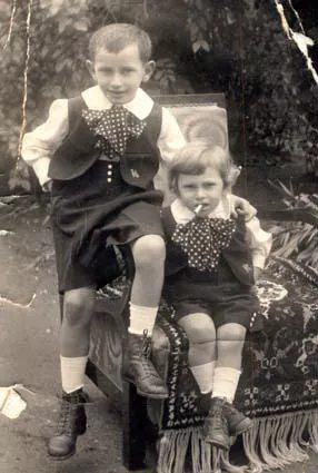 Ezen a fényképen én vagyok és a testvérem, Tamás, a béli ház kertjében.