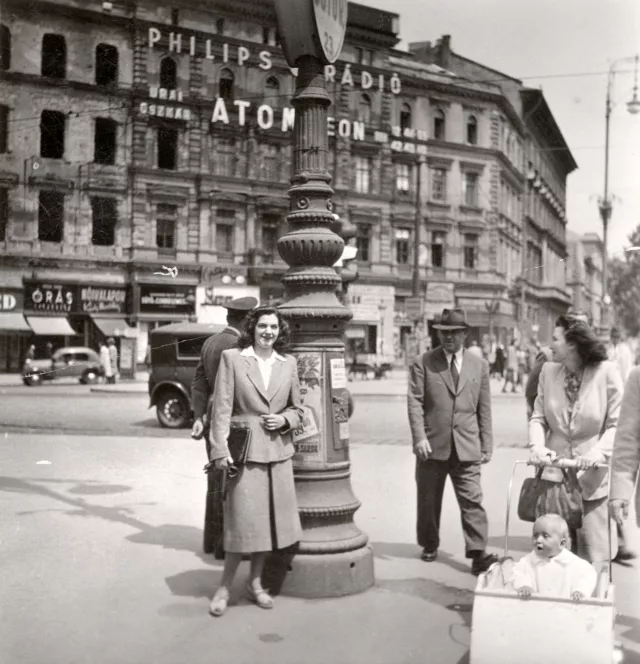 Ez én vagyok az Oktogonon. A kép 1948 júniusában készült, egy hónappal az esküvőm előtt. Fogalmam sincs, ki csinálta a képet, és hogy milyen alkalomból.