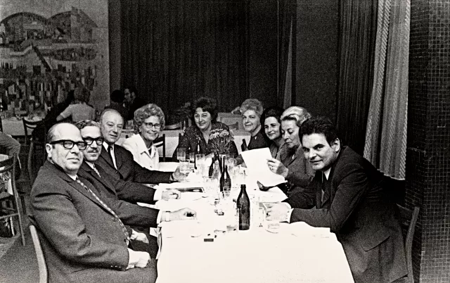 1970 és 1990 között volt egy baráti társaságunk. Négy házaspárból állt, és minden szombaton összejöttünk, mindig együtt szilvesztereztünk. Az egyik férfi a televíziónál volt főmérnök, a felesége háztartásbeli. Ők voltak a társaságban egyedül keresztények, a többi zsidó volt. A feleség nagyon vallásos katolikus volt. Aztán úgy a nyolcvanas évek végén elkezdte dicsérni a Horthy-rendszert. Bennünket, három zsidó nőt, ez nyomasztott, és mondtuk, hogy ne mondj ilyet, ez nem igaz. A másik férfi külkereskedő volt, a felesége háztartásbeli. A harmadik férfi osztályvezető volt a Bizományi Áruházban, a felesége tisztviselő különböző vállalatoknál, a negyedik férfi a Chemolimpexnél volt osztályvezető, a felesége pedig a Bizományi Áruház egyik boltjának a vezetője. Húsz éven keresztül minden szombat este elmentünk egy étterembe. Sokat jártunk a Kárpátiába, a Bajkálba (a Semmelweis és a Kossuth Lajos utca sarkán, most a Magyarok Háza van ott), Budára a Síposhoz. A nagy asztal körül úgy helyezkedtünk el, hogy a férfiak és a nők külön. Jól megvoltunk, pletykálkodtunk, politizáltunk.
