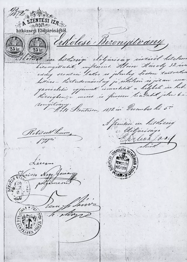 Korányi György apai nagyapjának erkölcsi bizonyítványa