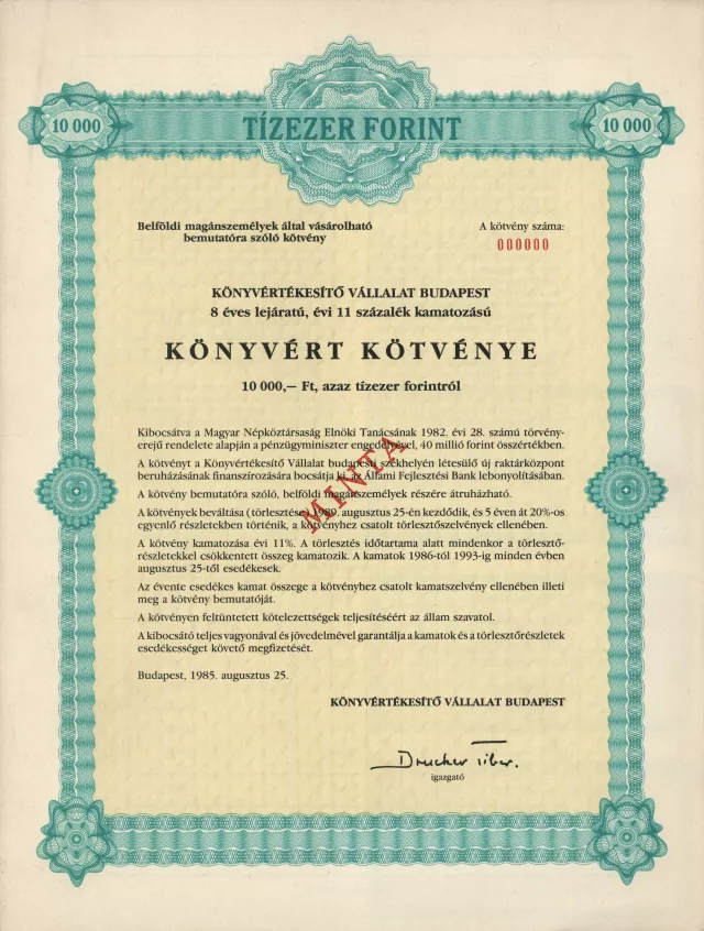 Ez az úgynevezett "Könyvesház-kötvény", amely az első kulturális célú lakossági kötvény volt.