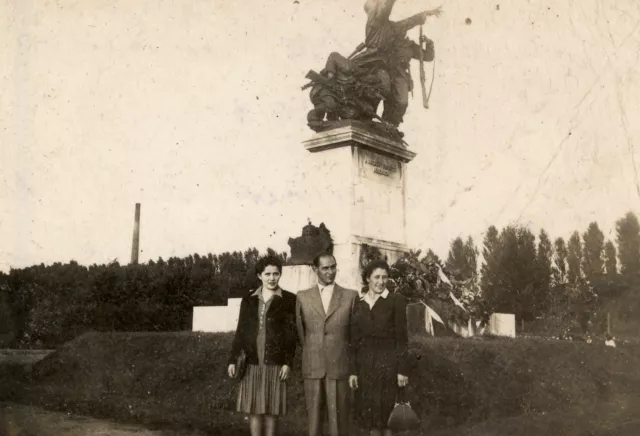 A két legidősebb lánytesvérem látható itt. Bal oldalon Aranka, jobb oldalon Szerén áll. Ekkor még biztos, hogy nem voltak férjénél a leánytestvéreim. A kísérőjüket nem ismerem, talán valamelyik szomszéd vagy az ő ismerősük.