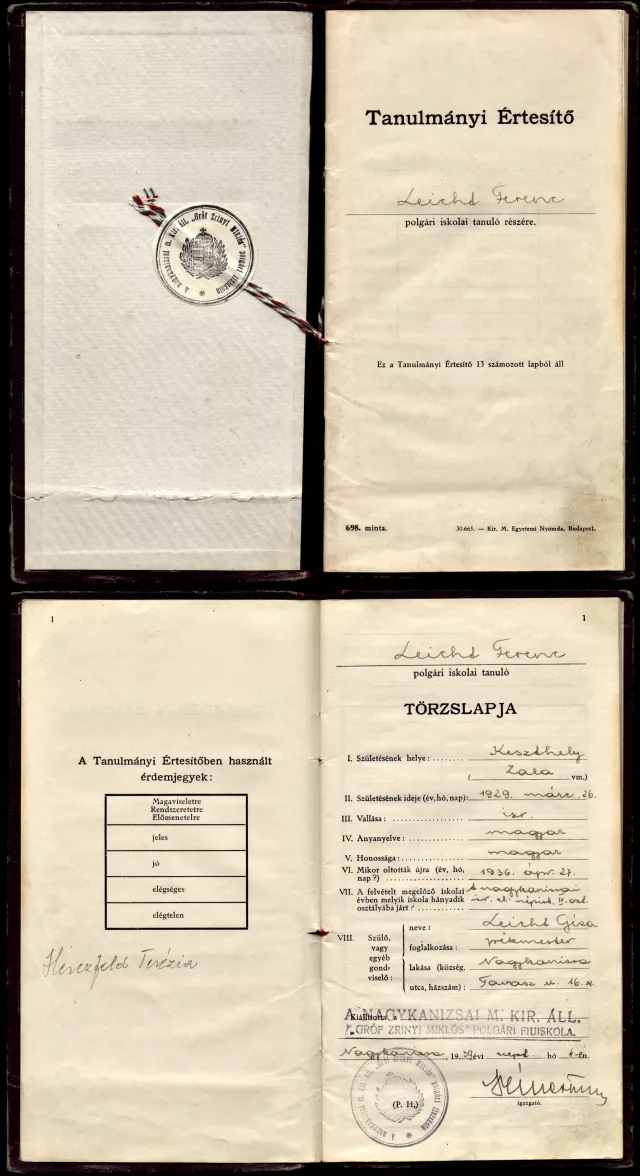 Ez az én polgári iskolai tanulmányi értesítőm 1939-ből.