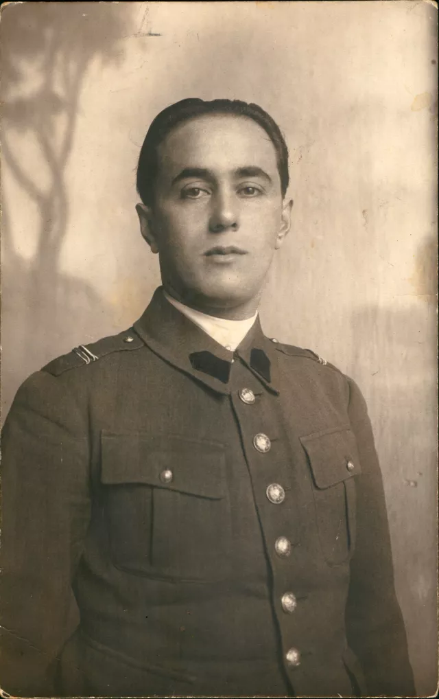 Ez a [nagy]szebeni fogorvos nagybácsim, concentrán volt Kolozsváron [Mint katonaköteles korú személyt, behívták bizonyos időre, 1-2 hónapra, továbbképzés céljából. -- A szerk. ]. Márer Jenőnek hívták. Ő úgy első unokatestvér édesanyámmal, hogy édesanyámnak az édesanyja és a Jancsi bácsi édesanyja voltak a testvérek [Márer Jenőt a családban “Jancsi” néven emlegették. -- A szerk.]. A kép 1927. december huszonkettedikén készült, Tövisen, a Butyán Vilus-féle fényképészeti laboratóriumban. Ezt írja a hátán: "Szeretettel Jancsitól Kolozsvár, 1927. december 22."