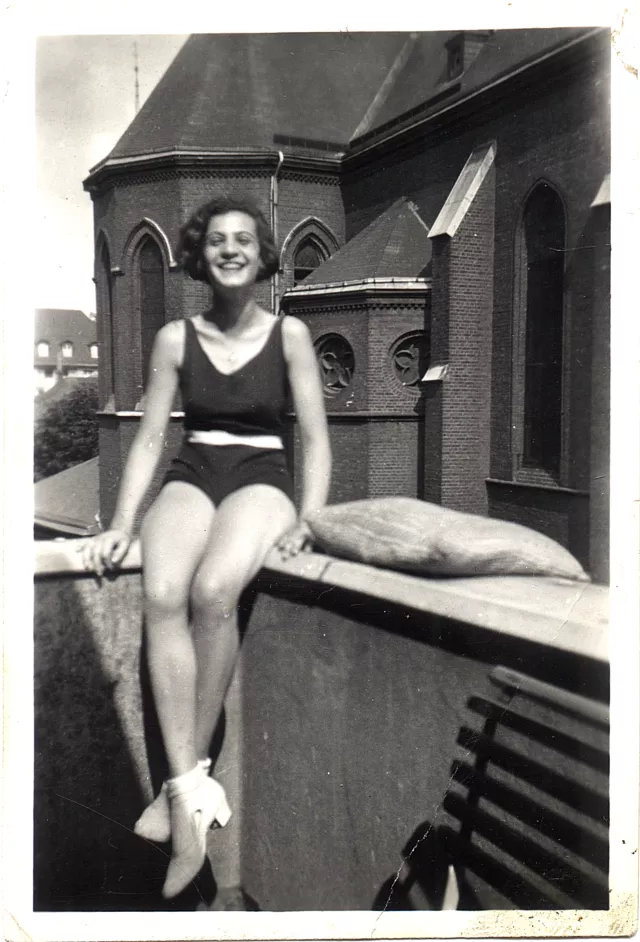 Ez én vagyok az anyai nagyszüleim barmeni lakásának a balkonján. Az a balkon egy templomudvarra nyílt, mert az ő házuk egy templom közelében volt. 17 éves körül lehetek ezen a képen, ami tehát 1931 körül készülhetett. A templom mögött van egy utca, és azon az utcán láttam többször felvonulásokat. Ez már a Hitler-Jugend volt, csak én nem tudtam.