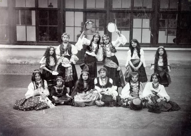 Ez egy farsangi kép. Anyuka a második sorban balról a második. Tizenhat éves lehetett ezen a képen, tehát 1906-ban készülhetett a kép. Ez biztosan Szegeden volt, de nem tudom, hogy az osztálytársai vannak-e a képen.