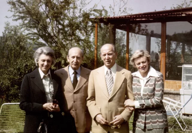 Olaszországban, Bolognában készült a kép, az öcsém, Andris és a bátyám, Misi van rajta a feleségével. Az 1970-es évek végén készülhetett a kép. Akkor nekünk még nem adtak útlevelet, hogy külföldre menjünk. A bátyám Bolognában élt. Öcsémen (jobboldalt) világos öltöny van, mellette Júlia sógornőm, a felesége. Ő egy Marosvásárhely melletti faluból való. Baloldalt van a bátyám, mellette Clara Maletti, a felesége. Lehet, hogy kirándultak, és meglátogatták a bátyámat. Nekem küldték a képet, rá van írva: "Juci". Örökké küldenek mindenről képet.