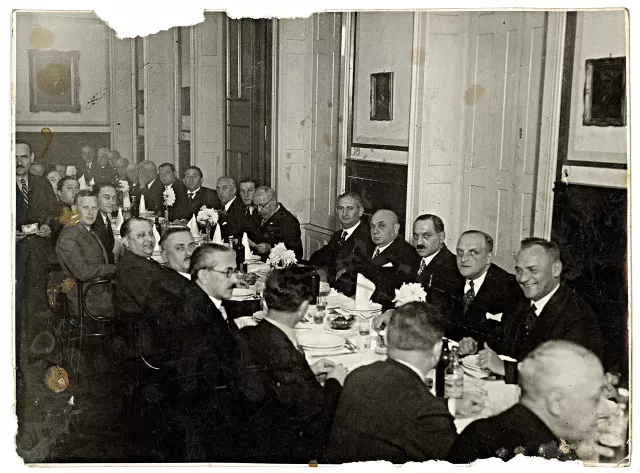 A háttal ülő sorban jobbról a negyedik (szemüveges) az apósom, Molnár Zoltán. A drogista ipartestületnek voltak ilyen vacsorái.