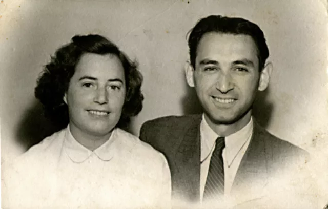 Ez a kép az 1950-es évek elején készülhetett Budapesten. A feleségem, Magda és én vagyunk rajta. Nem rémlik, hogy milyen alkalomból csináltattuk. Akkoriban voltak ilyenek, hogy jöttek gyerekekhez fényképészek, becsöngettek, és csináltak képeket. És talán magunkat is lefényképeztettük. Otthon csinálták a képeket, de ilyen képek a gyerekekről azért nincsenek nálam itten, mert a gyerekeim megkapták tőlem.