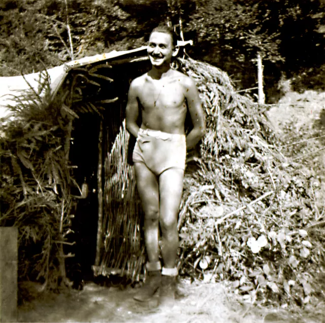 Ez tartott egy pár hónapig, júniusban menetszázad lettünk, és fölvittek bennünket a Kárpátaljára, Turjaremetére -- ott egy hadi utat kellett építeni a hegyen keresztül. Ez a kép a munkaszolgálat alatt, a Kárpátokban készült 1942 nyarán. Ilyen félig a földbe ásott sátorban laktunk. Mindenkinek magának kellett megépítenie, és úgy lakott, ahogy meg tudta építeni. Olyan 80 centi mélységig ki kellett ásni a földet, és akkor fákkal körülbástyáztuk, alul döngölt föld volt. Voltak, akik farudakat tettek le, hogy ne a földön aludjanak. És akkor katonai sátrakat tettünk rá, és meg kellett csinálni, hogy kifelé folyjon a víz, hogy ha eső van. Bent fával is kiraktuk, és például az ágy alatt tartottuk a hátizsákot, de nem a földön, hanem fagerendákon, mert átnedvesedett volna. Az ágy egy szalmazsák volt. És úgy kellett megépíteni, hogy két-két ágy került mind a két oldalába, és négyen laktunk egy sátorban. Nekem nagyszerű társaim akadtak. Csupa baloldali beállítottságú fiúkkal kerültem össze. Sátortársam volt a Kende Pista, a Neumann Jóska, és még egy fiú volt, nem emlékszem a nevére, de azt tudom, hogy szabó volt a foglalkozása. A Kendéről tudok, ő később a közgazdasági egyetem tanszékvezető egyetemi tanára volt, a többiekről semmit nem tudok. A Kende meg a Neumann erősen befolyásolták a világnézetemet. A harmadik fiú csak helyeselt, ő nem volt egy képzett, de ez a két fiú nagyon képzett volt. A baloldali ifjúsági mozgalom szervezésében vettek részt. Nem tudom, azt hogy hívták akkor. Nem oktattak kifejezetten, csak kommentálták az eseményeket, én hallgattam, és kérdeztem őket. Vasárnap délután szabadnap volt, nem volt kerítés, jöhettünk-mehettünk szabadon. És a sátortársaim vittek az erdőbe -- jó messzire bementünk --, és munkásmozgalmi dalokat énekeltünk.