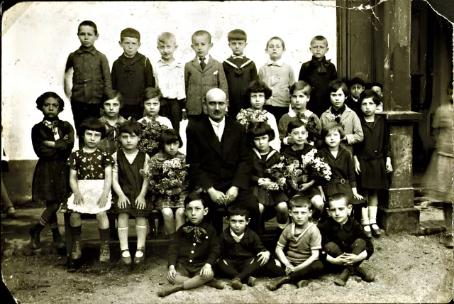Ez egy iskolai kép, a feleségem, Weisz Magda van rajta. Az első ülő sorból jobbról a második ő. Vácon készült a kép. Másodikosok lehetnek, ami azt jelenti, hogy 1927/1928-ban készülhetett a kép.