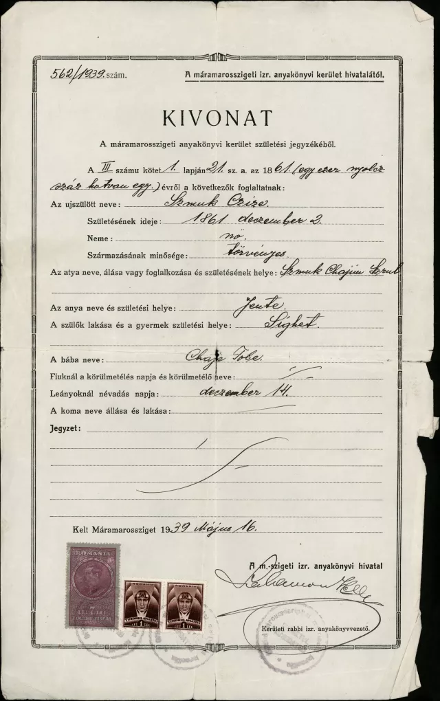 A máramarosszigeti anyakönyvi kerület születési jegyzékéből