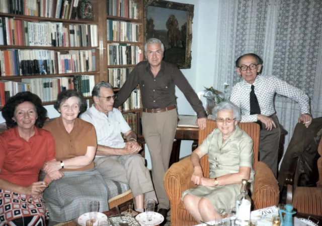 A képen lévő másik férfi Rózsa Imre, nagyon jó barátunk. Jelenleg a kolozsvári zsidó hitközség titkára. Nagyváradi származású, az erdélyi Plafarnak (gyógynövénybegyűjtő központ) volt az igazgatója, most egy pár éve lett titkár. Balról az első ülő nő a felesége, katolikus, valahol a mezőgazdasági akadémián dolgozott, onnan nyugdíjazták. A kép Rózsáék lakásán készült, most is így néz ki: ott van a dívány és a könyvszekrény is.