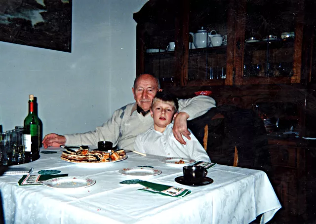 Ez a kép az 1990-es években készült, én vagyok rajta a nevelt fiam gyerekével, Rolanddal, akit unokámként szeretek.