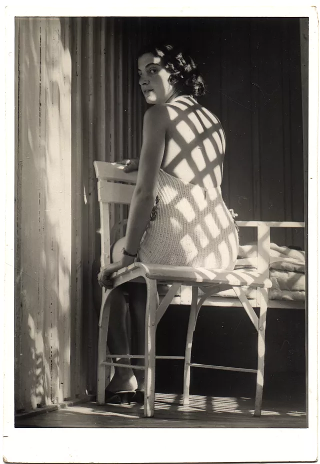 Volt egy irodalmi társaság, a Vajda János Társaság. Megkeresték a nagynénémet, Szentpál Olgát. Tudták, hogy van egy csoportja, Vajda János költeményeit akarták népszerűsíteni, és a versek bemutatását mi egészítettük ki tánccal. Velük jártunk előadókörútra a Balatonhoz, ez körülbelül 1934 után volt, és nagyjából egy évig tartott. Én borzasztóan örültem nekik, ők vittek a Balaton körül, és nekem az volt az első lehetőségem, hogy Magyarországból valamit megismerjek. Ez a Balaton körüli túra egy üde folt volt az életemben. És egyáltalán nem volt strapás dolog. Az egyetlen strapás dolog az volt, hogy ennek a társaságnak a vezetője belém habarodott. Ez nekem rendkívül kínos volt és terhes. Ott fényképezett, ahol talált. Állandóan fényképezett. Ez is valahol ott van, de egy erdei kiránduláson. Akkor neki az tetszett meg, hogy a hátamon milyen árnyékot vet az a farács. Azok ilyen faházak voltak. Nem tudom, most vannak-e még, de egy ilyenben laktunk. És annak nem volt ablaka, hanem rács volt.