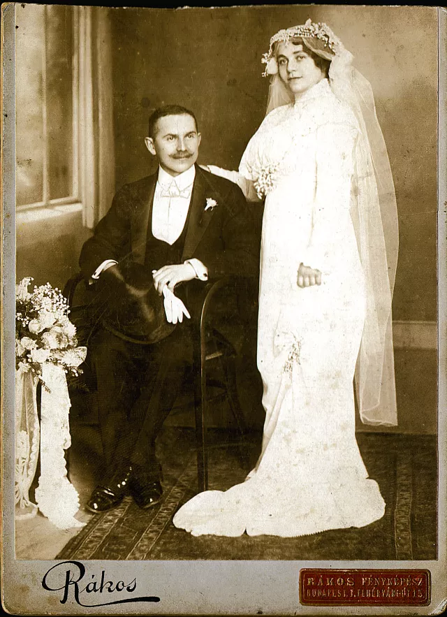 Ez az Oblath Ferenc, anyukám egyik bátyja és a felesége, Szerén. Ez a házassági képük. Gyerekük nem volt soha, és szinte semmit nem tudok róluk. Feri bácsi volt a "társa" a Kertész Zsigmond és társa csemege- és fűszerüzletben.