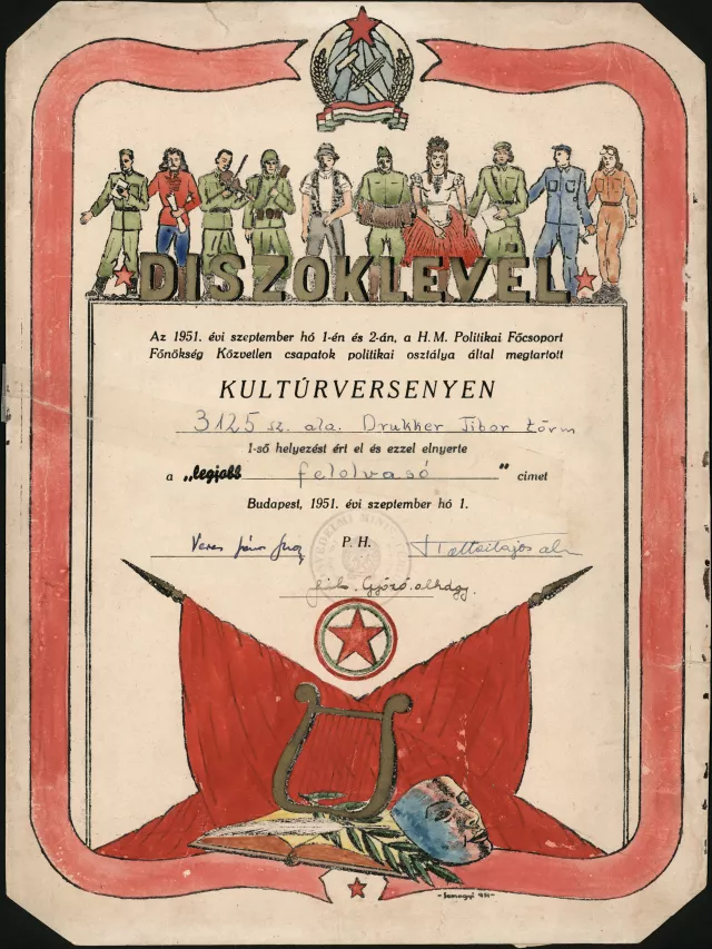 Ez az oklevél a Pécsett szolgált katonaéveim alatt megrendezett kultúrversenyen elért "legjobb" felolvasó címet igazolja.