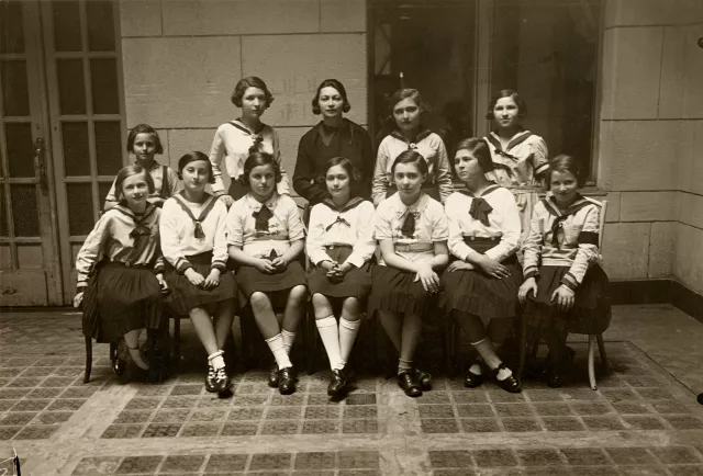 Ezen a képen Greiner Magda, a nővérem látható. Ez egy osztálykép egy magángimnáziumban.