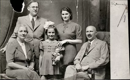 A képen a P. család látható kaposvári otthonában. Balról az első P. Vilmosné. Mellette áll az unokája, Évike, mellette ül P. Vilmos. P. Vilmosné mögött áll a fia, P. Imre, mellette pedig a testvére, P. Sára.