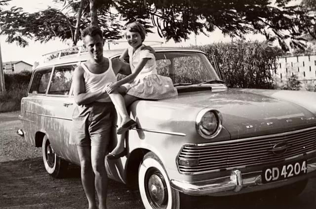 A férjem a lányunkkal, [Pudler] Ágnessel Accrában, amikor 1962 és 1965 között ghánai kiküldetésben voltunk. A képen a szolgálati gépkocsi látható.