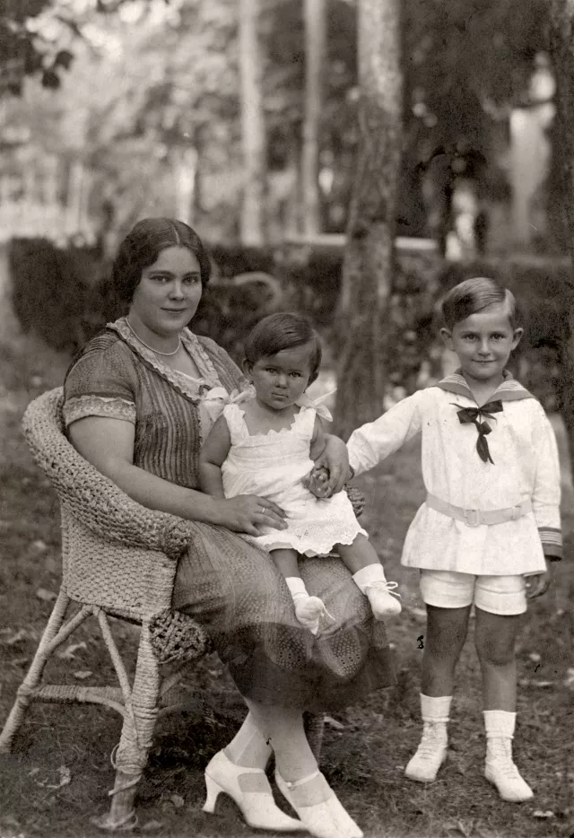 A kép anyósomat, Rosenberg Margitot ábrázolja a két gyerekével. A majdani férjem áll, a húga, Évi ölben ül.