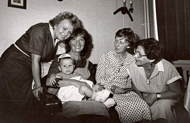 1984-ben készült a kép, a lakásunkban. Jobbról balra: Sas Andorné (Rózsi nővérem nászasszonya), [Pollák] Aranka nővérem, egy barátnőm és én. A kisgyerek Sasné unokája.
