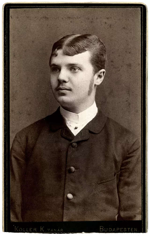 Ez Reichard Zsigmond, Reichard Mária nagymamám testvére. A kép készültekor 21 éves. 1863-ban született Székesfehérvárott, és 1916-ben halt meg Budapesten agyhártyagyulladásban. Ő méltóságos úr volt. A feleségét ismertem, mert az nagyon sokáig túlélte őt, 1944-ben halt meg, és végig méltóságos asszony volt. Reichard Zsigmond kúriai bíró volt. Azt nem tudom, hogy a jogot hol végezte. A Huszadik Század egyik alapító tagja volt, szóval egy ilyen liberális, haladó szellemű kultúrlény, és apám mentora. Mert apám is jogász lett. Reichard Zsigmond írt is a Huszadik Századba. Talán egy kicsit jobbra volt Jászi Oszkártól. Egy hallatlanul kulturált, művelt ember volt. Sokat utaztak, tele voltak mindenféle műkinccsel. Például Csók István fehérvári volt, és akkor voltak Csók István képeik. Volt sok perzsaszőnyegük. Én már csak az özvegyét ismertem, aki az özvegyi nyugdíjból élt. Addigra a Palatinus házbeli nagy lakás már ketté lett választva, és mellettük lakott a feleség nővére. De ők még akkor költöztek oda, amikor a Palatinus házakat építették a Margit híd pesti hídfőjénél, az első házban laktak, és a Dunára nézett az ablakuk. Két gyerekük volt. Egy lány, aki matematika tanár lett, és aki soha életében nem kapott állást, mert 1920 után már nemigen lehetett. És volt egy fiuk, aki a Chinoinban volt vegyészmérnök, ő 1944-ben úgy végezte, mint a legtöbben.