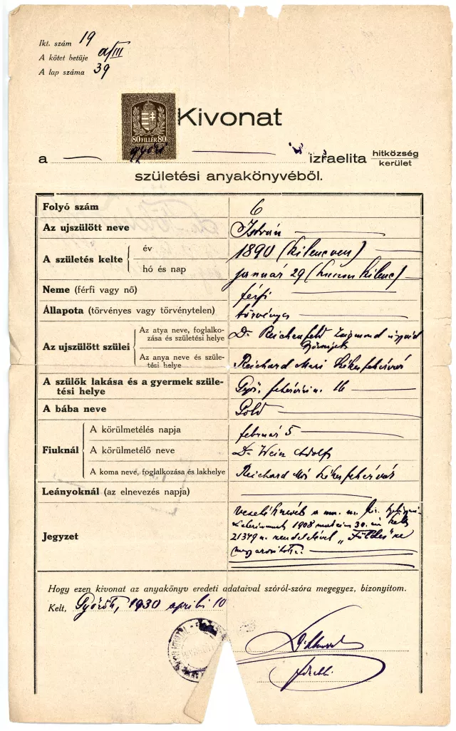 a győri izraelita hitközség kerület születi anyakönyvéből