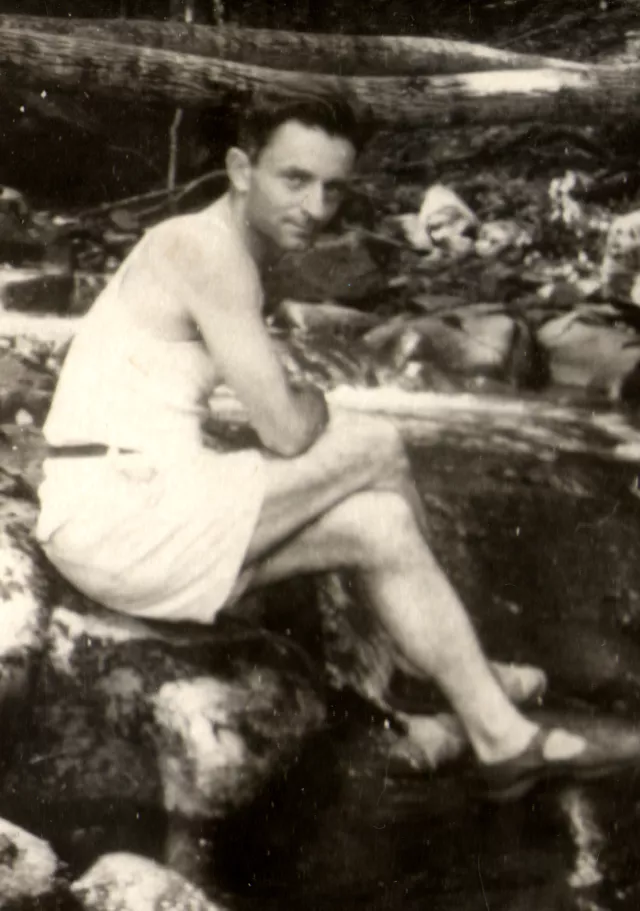 Én [Ringel László] vagyok a képen mint munkaszolgálatos. Budapest mellett állomásoztunk egy szigeten. A képet 1940-ben készítette egy bajtársam. A képet elküldtem a szüleimnek, a háború után pedig megtaláltam a házunkban.