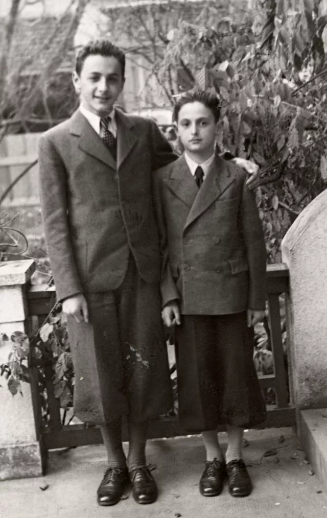 A képen én vagyok látható a bal oldalon. Mellettem öcsém áll, Gyuri [Róth György]. A kép Kolozsváron készült.