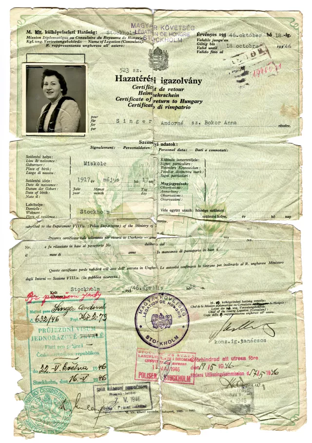 S. Andorné hazatérési igazolványa