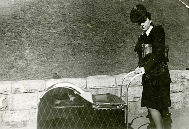 Két hónapos kislányomat sétáltatom 1943-ban, valószínűleg a Városligetben.