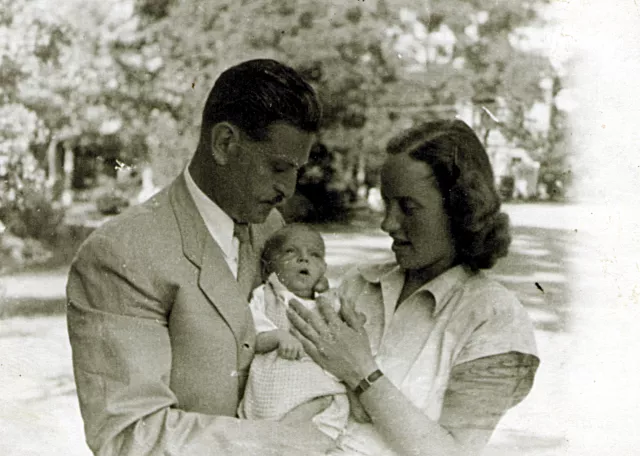 Ez én vagyok a feleségemmel, Adival és a fiunkkal, Gyulával 1947-ben.