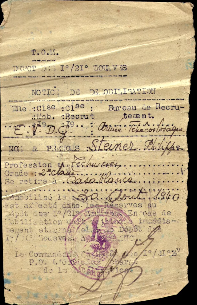 Ez a leszerelési igazolásom, melyet 1940. augusztus 30-án állítottak ki Casablancában az 1. és 21. zuáv ezrednél. Ezelőtt egy hónappal tettek át ebbe az ezredbe a légióból, és mivel még nem cserélték le a papírjaimat, az igazolás szerint én mint légiós szerelhettem csak le.