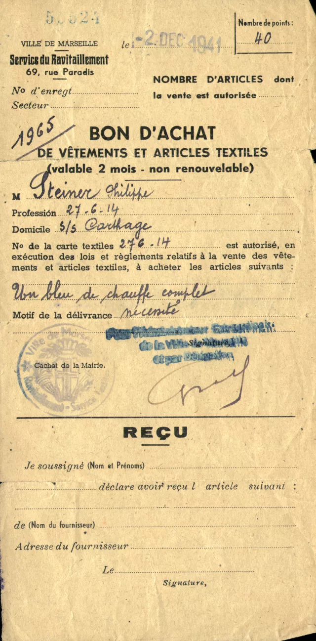 Miután leszereltem a Carthage hajóról, amin hosszabb időt szolgáltam, Marseille-ben maradtam. A hajót azért szerelték le, mert 1942 őszén már nem lehetett hajózni áruszállítás céljával Casablanca és Dakar irányába. Munkát kellett keresnem. Ebben segített az akkori kapitányom, Monsieur Durut, aki írt egy ajánlást nekem, sőt még egy hamis lakhatási papirost is kitöltött. Egyébként a lakásra nem volt gondom, mert Victor nevű barátom, akivel a Carthage-on ismerkedtem meg, segítségemre volt, és nála lakhattam. Ő nagyon gazdag ember volt, kuplerájai voltak Dakarban és Casablancában is. Szép villája volt. Amikor kiszálltunk egyszer Marseilles-ben a hajóról, Victor kérte tőlem, hogy egy fél kiló hasist vigyek le a hajóról. Én azt mondtam, hogy én ezt nem vállalom. Erre azt mondta, hogy gyere utánam. Fogta a hasist, betette a táskájába. A vámosok kérdezték, hogy van-e valami elvámolnivalója. Erre azt mondta, hogy hát igen, van nálam fél kiló elvámolnivaló hasis. Erre röhögtek a vámosok, és nem szóltak rá, nem motozták át. Szóval ilyen ügyei is voltak.