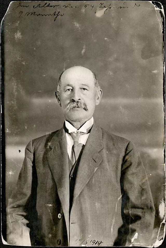 Anyai nagyapám [Schattelesz József]. Itt nem sokkal a halála előtt lehetett. A nagyapám 1848-ban vagy 1849-ben születhetett, és 1915-ben vagy 1916-ban halt meg. Emlékszem a temetésére. A nagypapa öltönyben, nyakkendőben járt, és volt bajusza. Otthon németül beszéltek.
